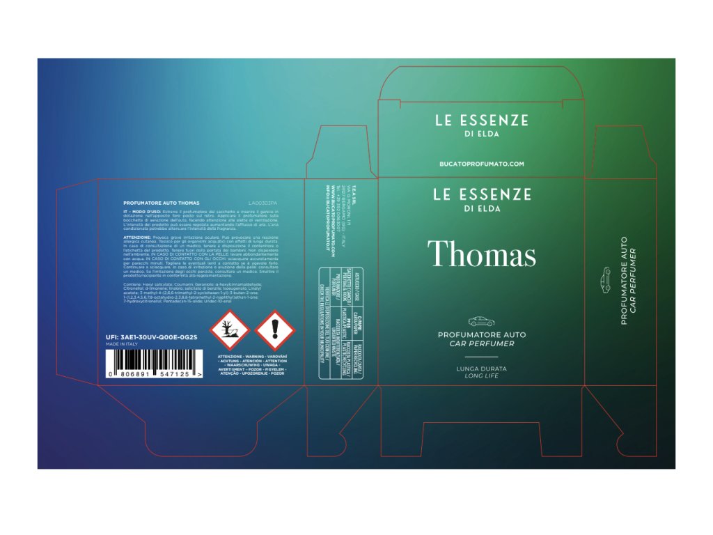 Dišava za avto THOMAS - pudrasto-cvetlična dišava z mošusom in vanilijo.