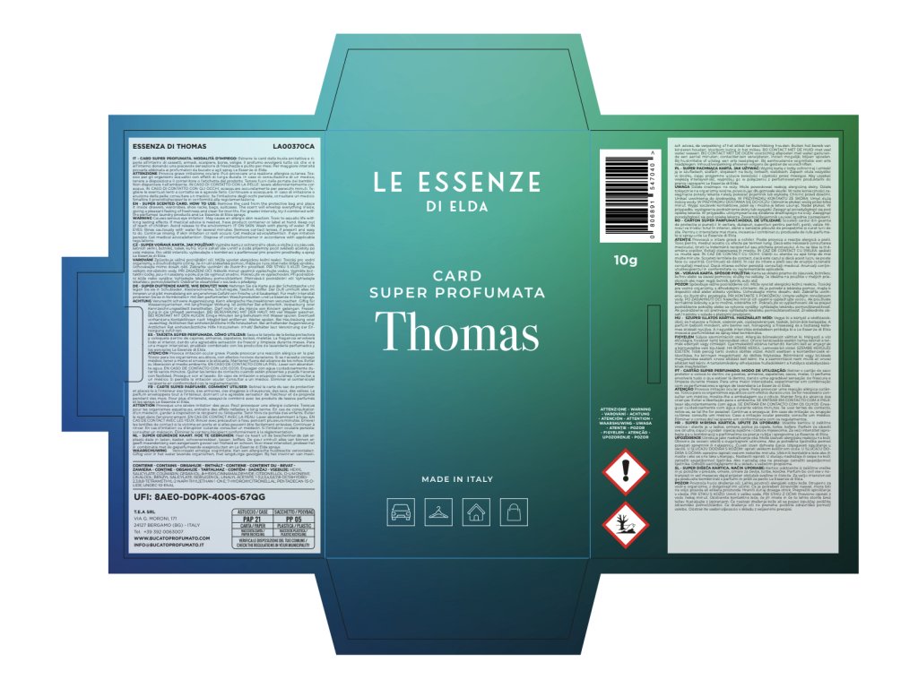 Dišeče karte iz edicije Le Essenze di ELDA so narejene iz posebne gume, iz katere se postopoma sprošča vonj. Vašim oblačilom dajejo mehak in prijeten vonj.