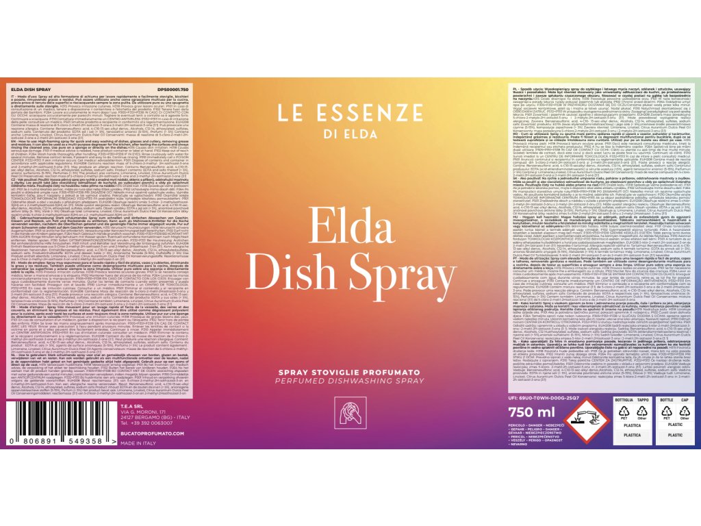 Predstavljamo vam ELDA DISH SPRAY 750 ml – revolucionarni način, kako prihraniti čas in trud pri vsakodnevnem pomivanju posode. Ta edinstven čistilec za posodo v obliki spreja se spopade tudi z najtrdovratnejšimi maščobami in ostanki hrane. Preprosto ga nanesite neposredno na gobico ali na površino posode, nekajkrat obrišite in pripravljeno! Poleg tega njegova osvežujoča citrusna dišava s pridihom pomarančne lupine prijetno odišavi vašo kuhinjo.