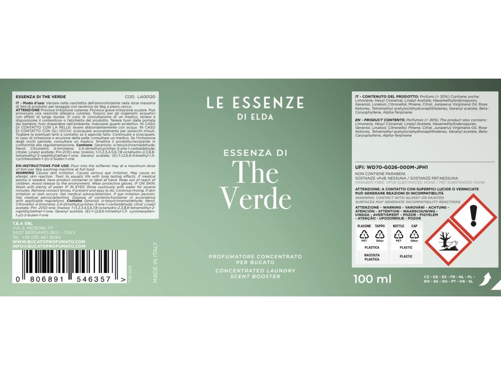 Parfum za perilo THE VERDE 100ml - svež citrusni vonj zelenega čaja.
