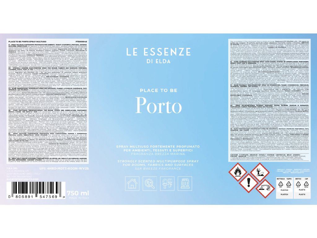 Multifunkcijski sprej PORTO 750 ml - svež pomladni vonj čistosti z visoko vsebnostjo parfuma, ki bo očistil in lepo odišavil vaš dom.