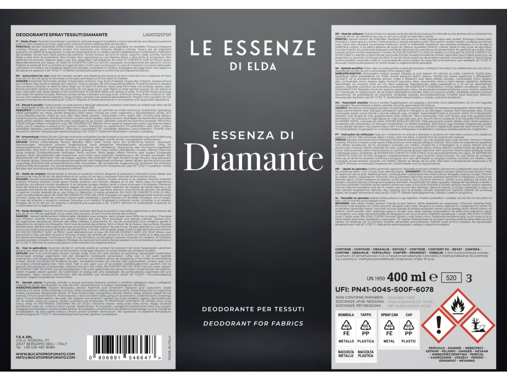 Sprej za tkanine DIAMANTE 400ml - cvetlično-pudrast vonj.
