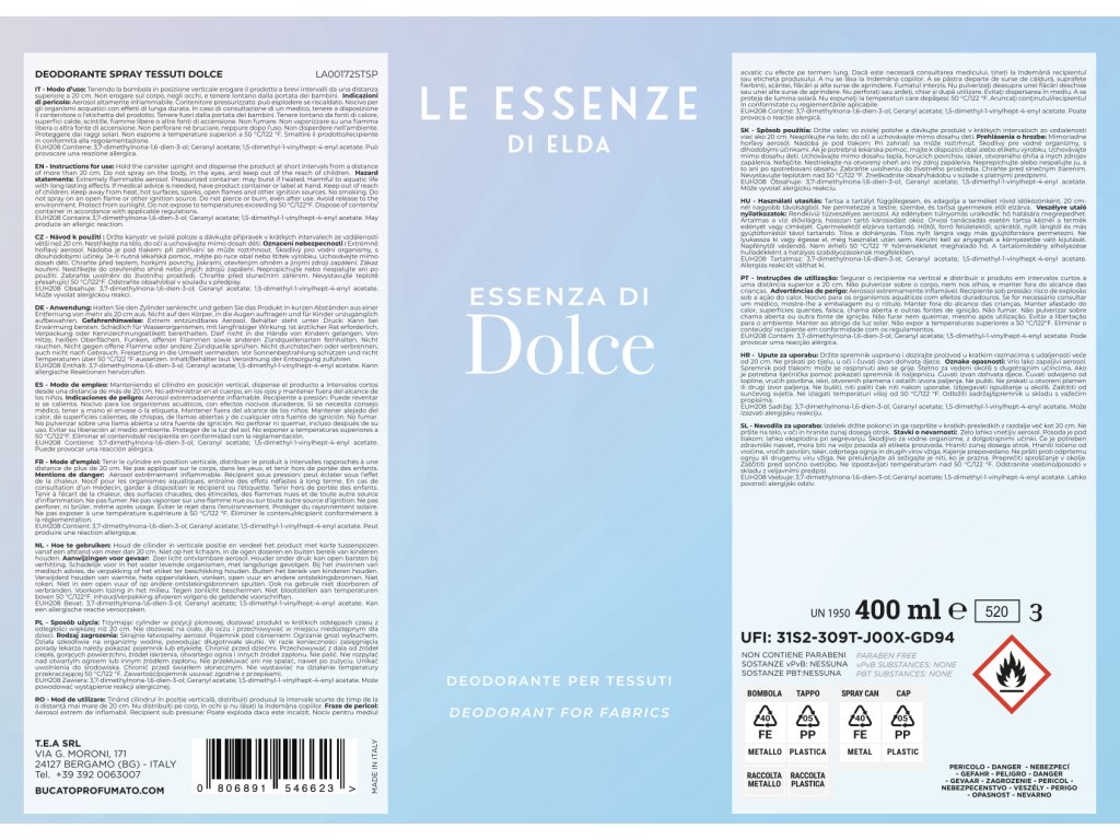 Sprej za tkanine DOLCE 400ml - otroški sladek cvetlični vonj.