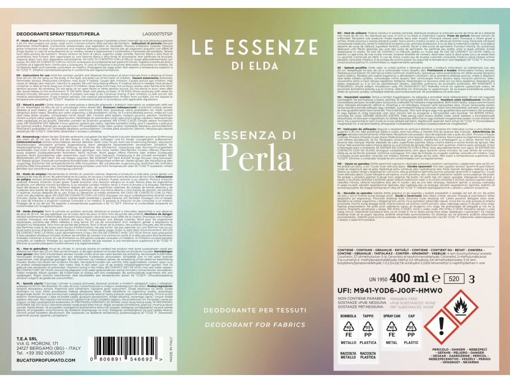 Sprej za tkanine PERLA 400ml - sladek cvetlično-pudrast vonj.