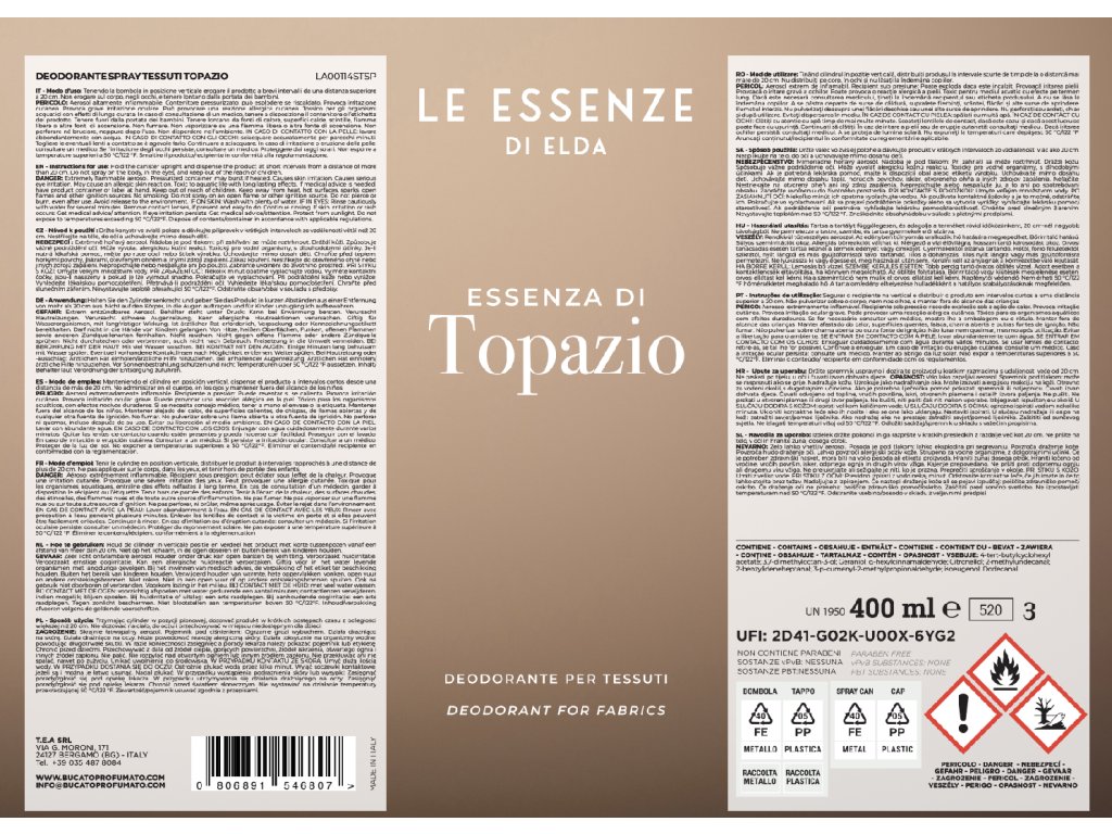 Sprej za tkanine TOPAZIO 400ml - cvetlična dišava z začimbnim pridihom.