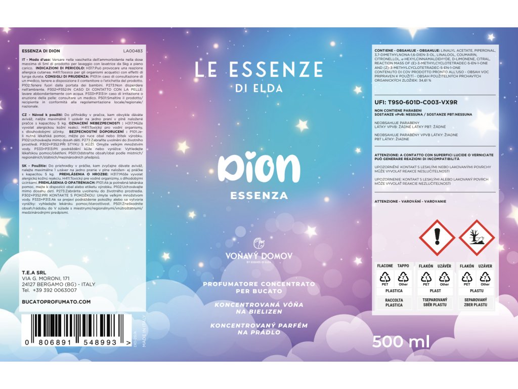 Parfum za perilo DION BABY 500ml - otroški nežno pudrast vonj.