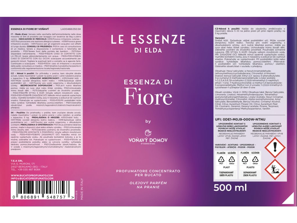 Parfum za perilo FIORE 500ml - pudrasta dišava s cvetličnimi podtoni.