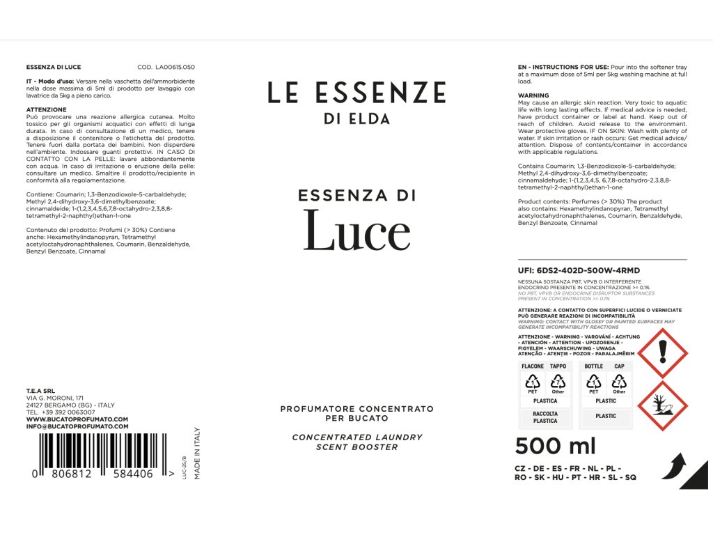 Pralno olje iz edicije Le Essenze di Elda je parfum za vaše perilo, je ljubezen na prvo uporabo.