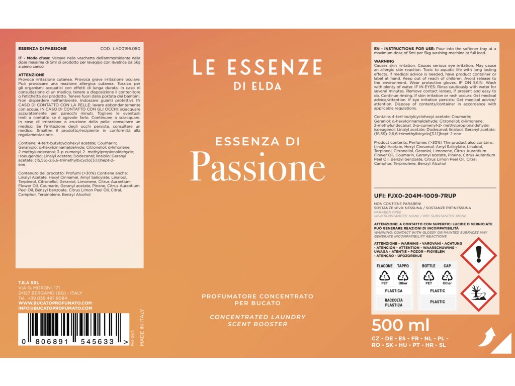 Parfum za perilo PASSIONE 500ml - svež pudrasto-citrusni vonj.