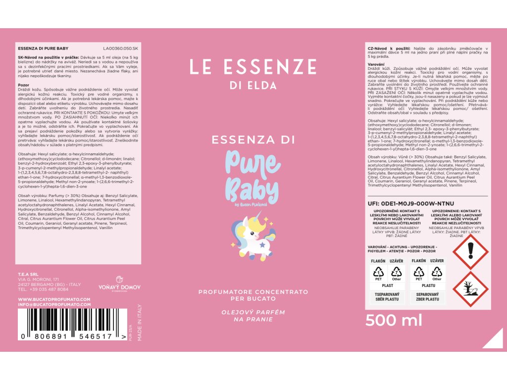 Parfum za perilo PURE BABY 500ml - otroški praškasto-sladek vonj.