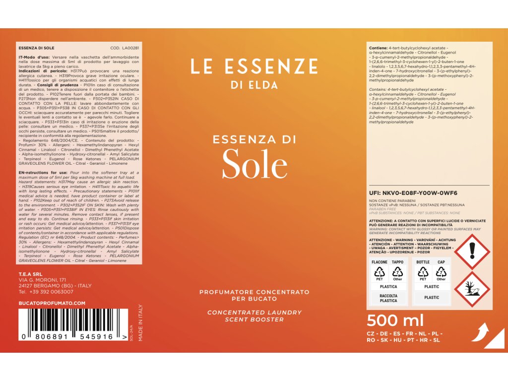Parfum za perilo SOLE 500ml - sveža cvetlična dišava s sladkimi podtoni.