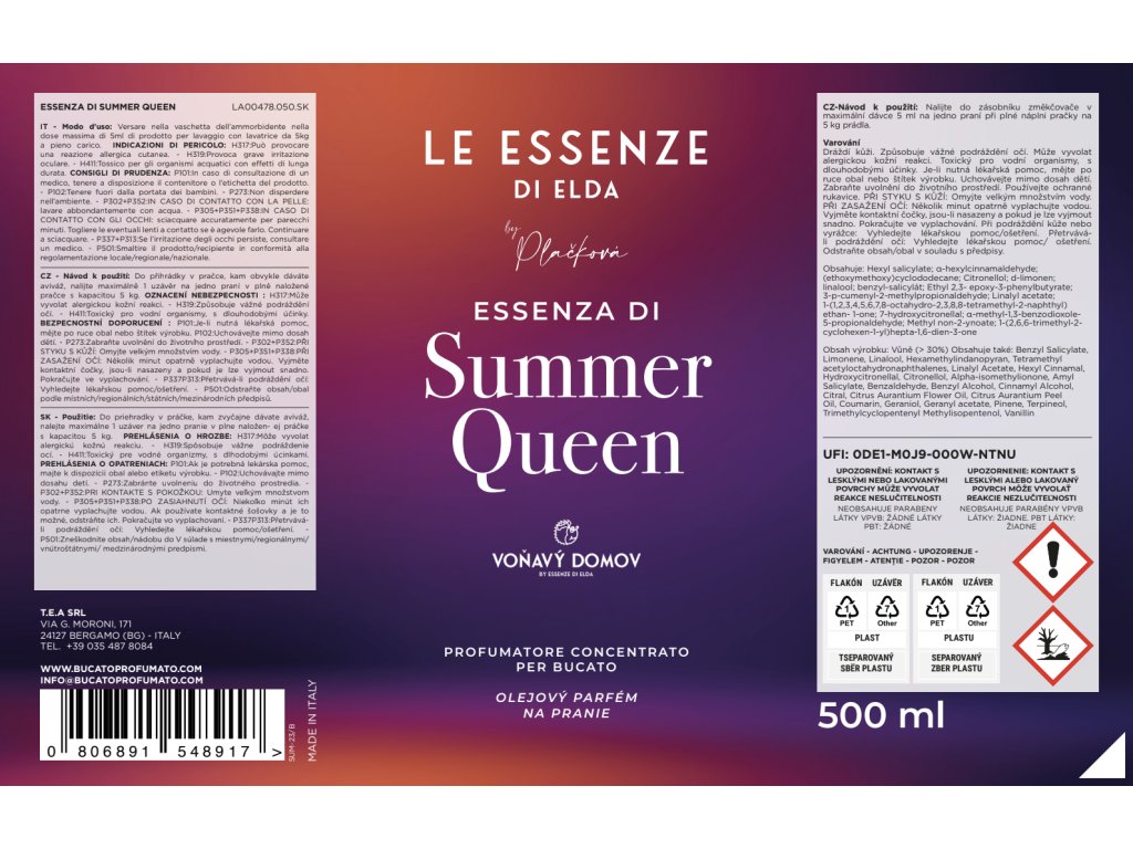 Parfum za perilo SUMMER QUEEN 500ml - izrazit svež vonj s pridihom citrusov.