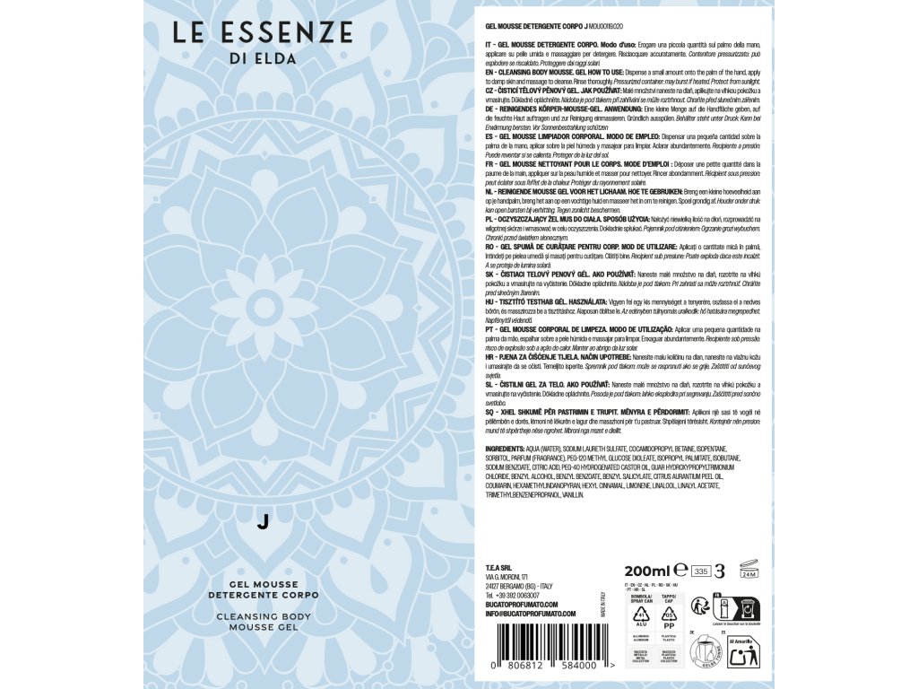 Čistilna pena za telo Gel Mousse znamke Essenze di Elda spremeni običajno prhanje v čutno doživetje. Njena inovativna tekstura – gel, ki se ob stiku s kožo spremeni v nežno peno – kožo nežno očisti in hkrati razvaja. Privoščite si trenutek samo zase – z vonjem, ki objame telo in um.
