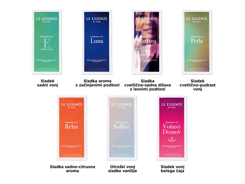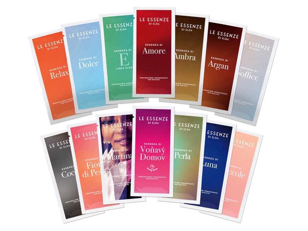 - ARGAN, AMBRA, AMORE, ESSENZA E, DOLCE, COCCOLE, SOFFICE, COCCO, PERLA, MARTINA, VONAVY DOMOV, FIORI DI PESCO, LUNA, RELAX