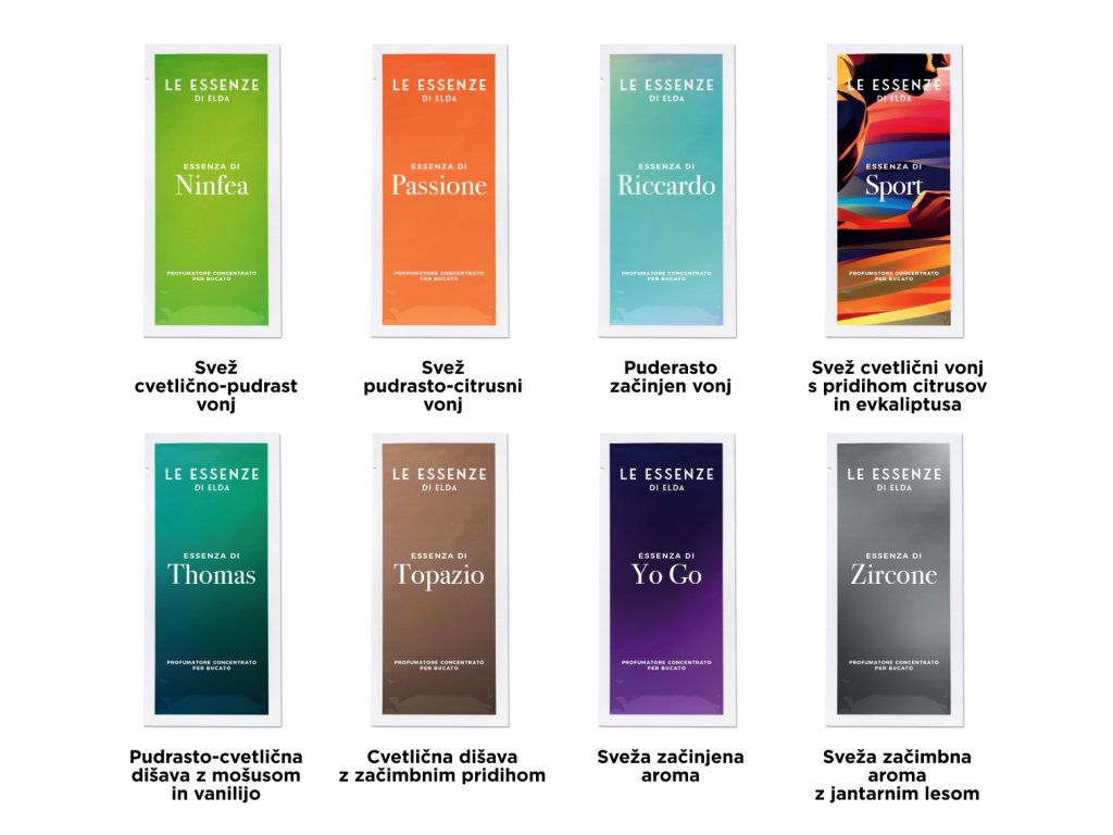 - ESSENZA L, PASSIONE, TOPAZIO, ZIRCONE, NEVE, DIAMANTE, DIAMANTE & BAMBOO, DIAMANTE & YLANG YLANG, DEMMA PREZIOSA, FIORE, NINFEA, YO GO, THOMAS, RICCARDO, SPORT